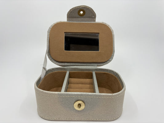 Rayell Cosmetics Case with Mirror - Vinyl with Velvet inlay - Small - Beige - 16x11x6.5cm